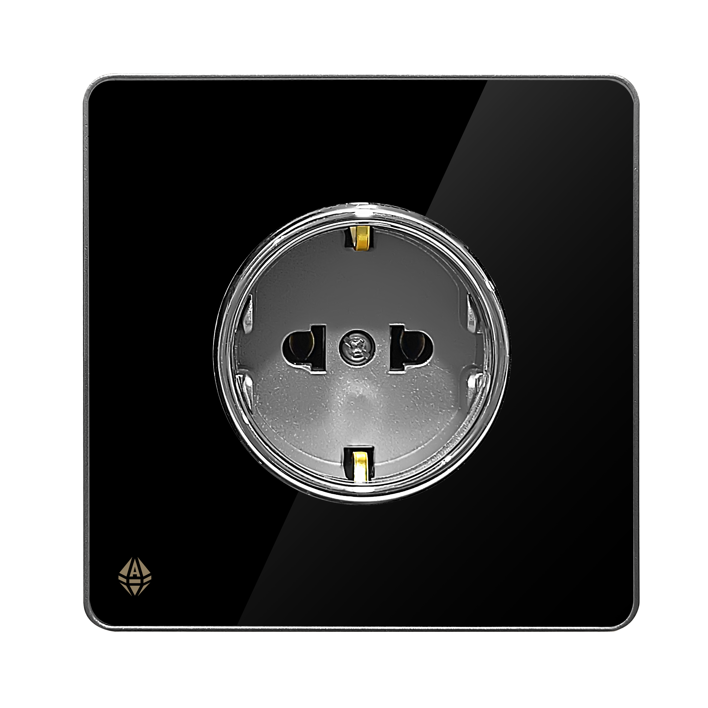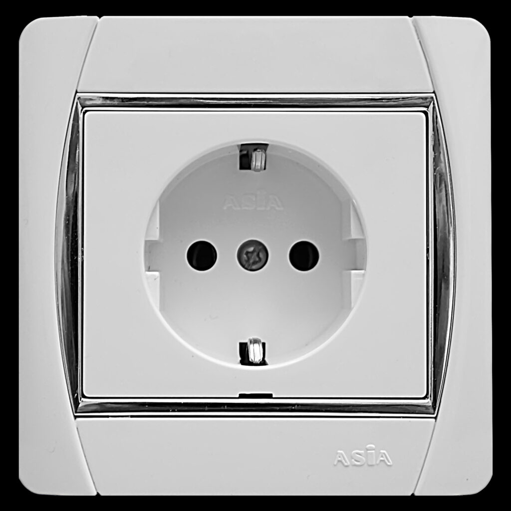 پریز برق ارت دار آسیا الکتریک مدل یاقوت مشکی زه نقره ای