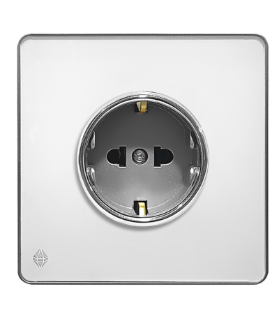 پریز برق ارت دار آسیا الکتریک مدل یاقوت سفید نقره ای