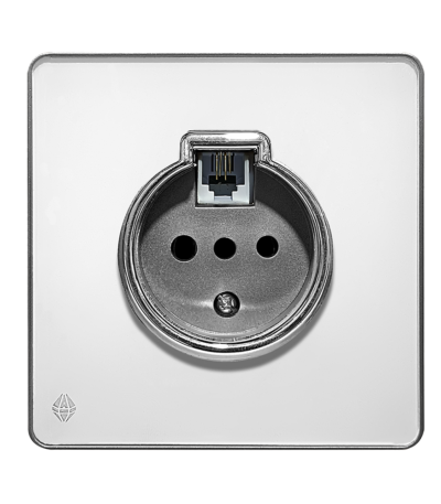 پریز تلفن دومنظوره آسیا الکتریک مدل یاقوت سفید نقره ای